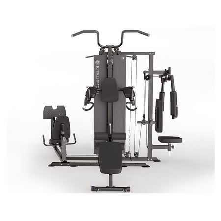 O W9 é um modelo com 4 estações e duas torres de peso que permitem mais de 30 exercícios para até três pessoas simultaneamente.